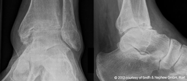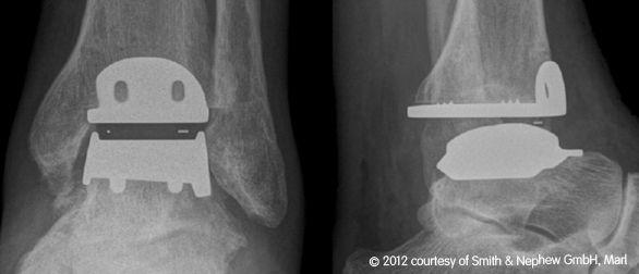 Seit 2003 werden in unserer orthopädischen Abteilung in geeigneten Fällen die arthrotisch oder unfallbedingt zerstörten Sprunggelenke durch ein „künstliches Sprunggelenk“ ersetzt.